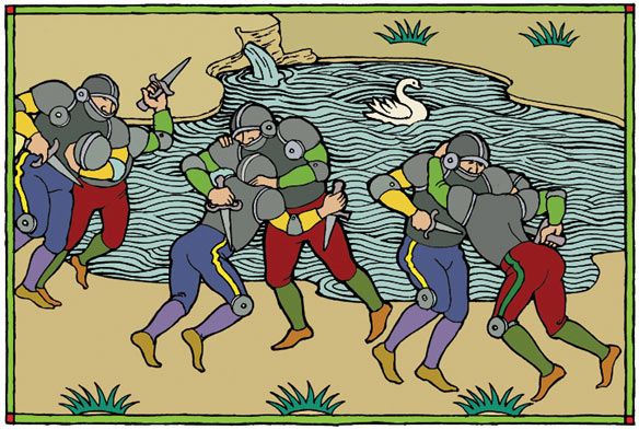 After Saul’s death, his son Ishbaal became king of Israel in the north while David was king of Judah in the south. Ishbaal’s general Abner met David’s general Joab at the pool of Gibeon. Their two armies sat down opposite each other on either side of the pool and Abner said, “Let the young men get up and play before us”. Joab said, “Let them stand up.” So they stood up, and twelve men from each side were chosen. Then each one grasped his opponent’s head and thrust his sword into his opponent’s side and they all fell down together. It was a tie.
