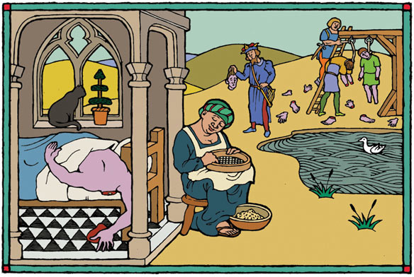 False witnesses turned up; they accused me of things I knew nothing about. With hypocritical mockery they gnashed me with their teeth. Yes indeed, they opened their mouths wide against me and said, “Aha, Aha, we saw what he did!” I am troubled; I am bowed down greatly; I am miserable all day long because my genitals are filled with a disgusting disease, and there is no healthiness in my flesh. My lovers and friends stand well away from my sores, and my relatives stand even further away. There are more people who hate me for no reason than there are hairs on my head. I’ve become a stranger to my friends, and I’m alienated from my brothers and sisters. The soldiers at the gate speak against me, and drunkards sing songs about me. Let them all go blind, and may their genitals continually tremble. — Psalms 31, 35, 38, 69 |