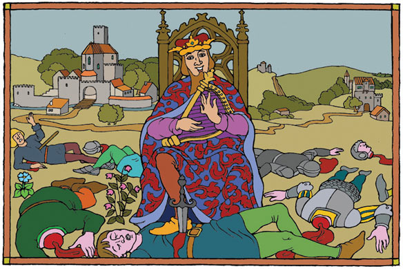 But the Ammonites said to Hanun, “Do you think that David is paying his respects to your father, or that he’s just sent his servants to spy out the city so he can overthrow it?” At that, Hanun took David’s servants and shaved off one half of their beards, and cut off their clothes in the middle, as high as their bottoms, and sent them away. When David heard this he sent messengers to meet them, because the men were embarrassed; and the king said, “Stay at Jericho till your beards grow back, and then return.” And the Ammonites saw that David thought they stank. So they hired 20,000 Syrians, 1000 men from king Maacah, and 12,000 men from Tob; but in return David sent Joab and all the mighty men against them. Then the Syrians fled, and when the Ammonites saw that the Syrians were fleeing, they fled too. When Syrian reinforcements came from beyond the river, David slaughtered 700 charioteers, 40,000 horsemen, and Shobach their captain. And when all the kings saw that they were beaten, they made peace and became subjects of David. — 2 Samuel 10 |