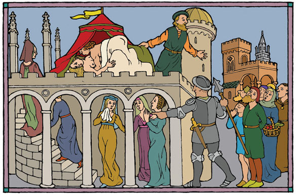 David said “Quickly, let’s leave in case he attacks the city.” And the king took all his household except for his ten mistresses, who he left as housekeepers. Absalom asked a counselor, Ahithophel, “What would you advise me to do next?” Ahithophil said “Go and have sex with your father’s mistresses, then all Israel will know that your father hates you and your allies will take courage.” So they pitched a tent on top of the house; and Absalom went up and had sex with each of his father’s mistresses where everyone could see. — 2 Samuel 15:13 |