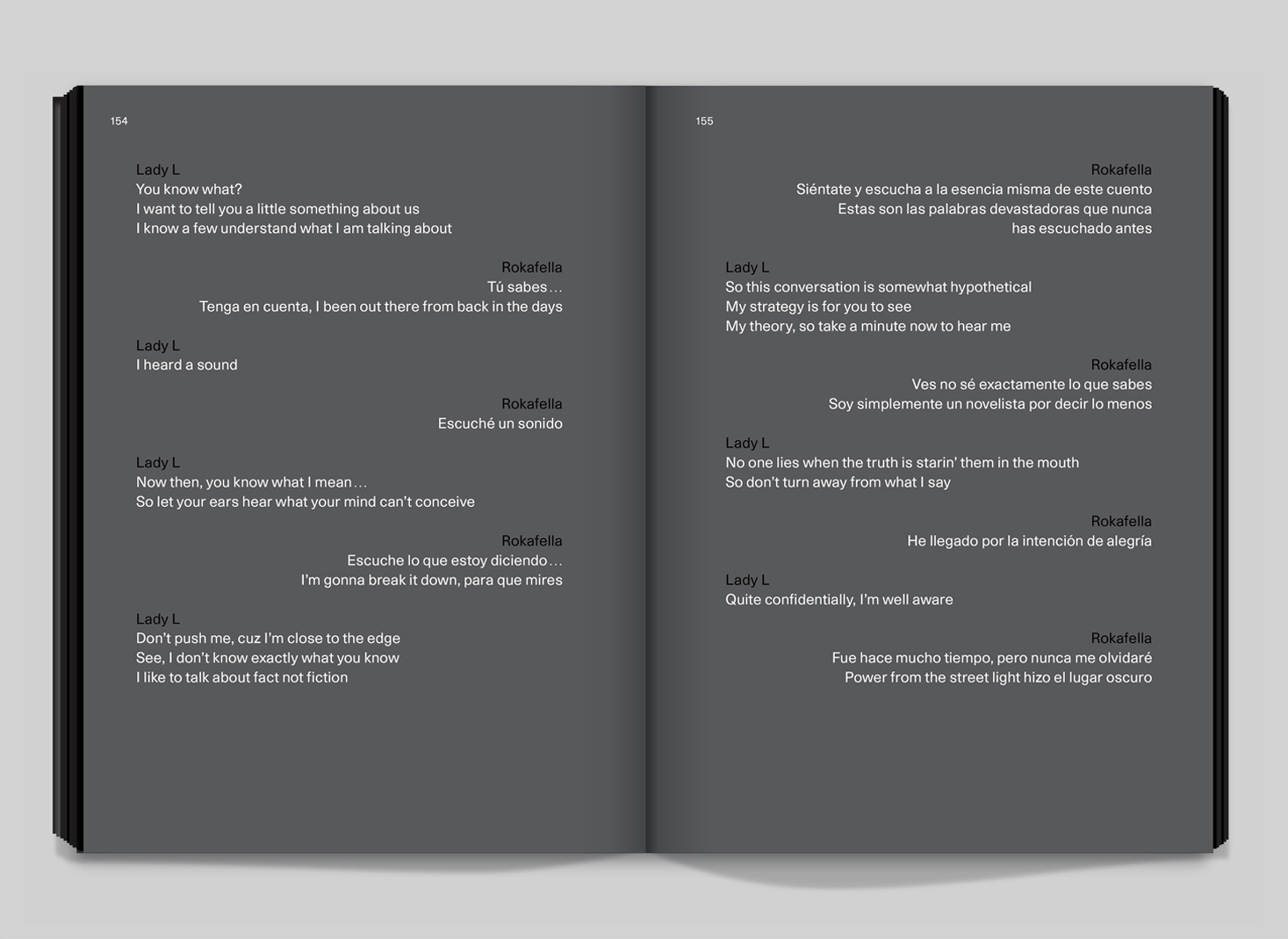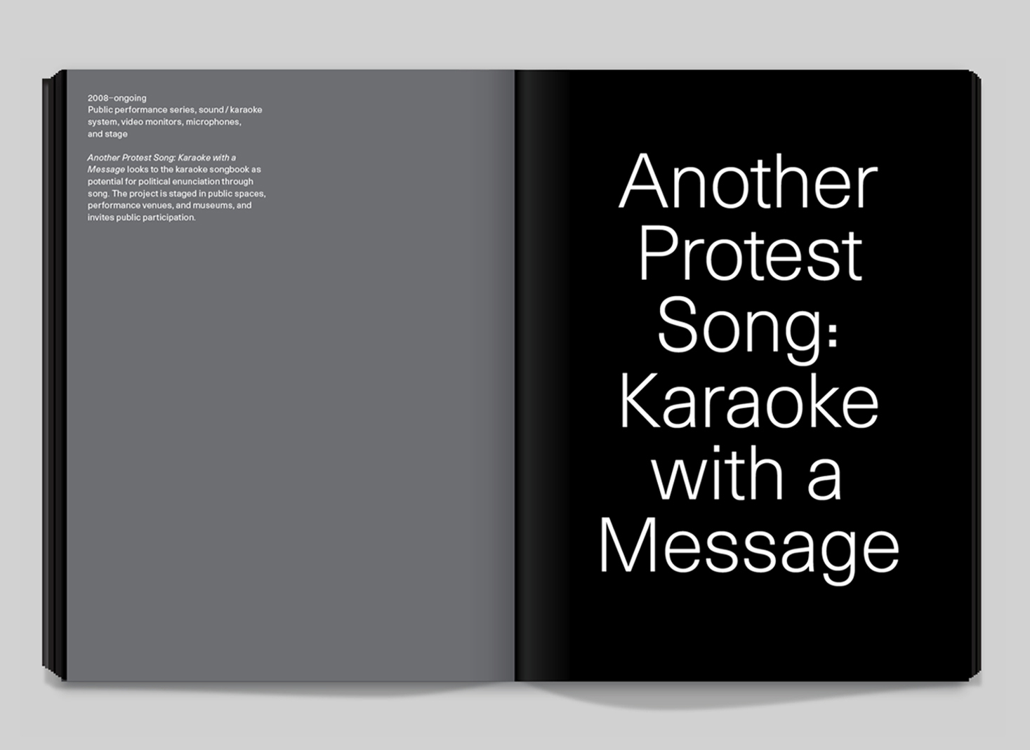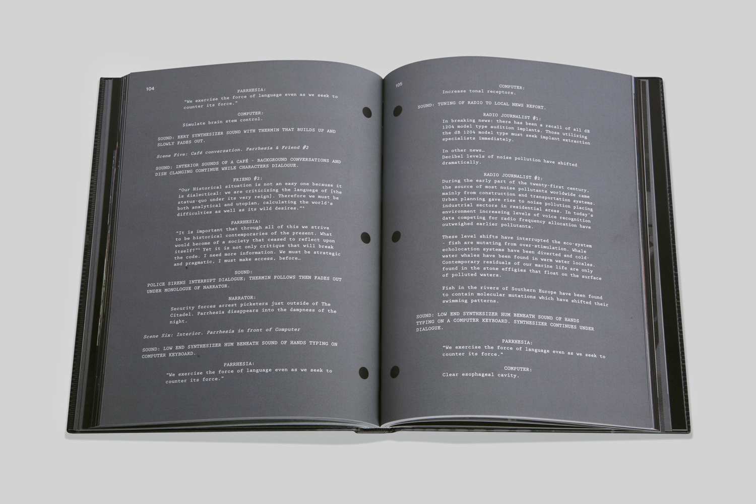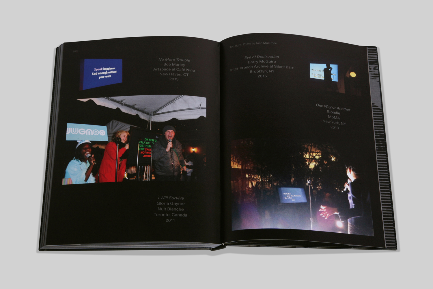Every section featured a different layout responding to a project; there were transcripts presented in screenplay format, regular bookish pages, double page spreads mimicking split screen videos, and a variety of other strategies.