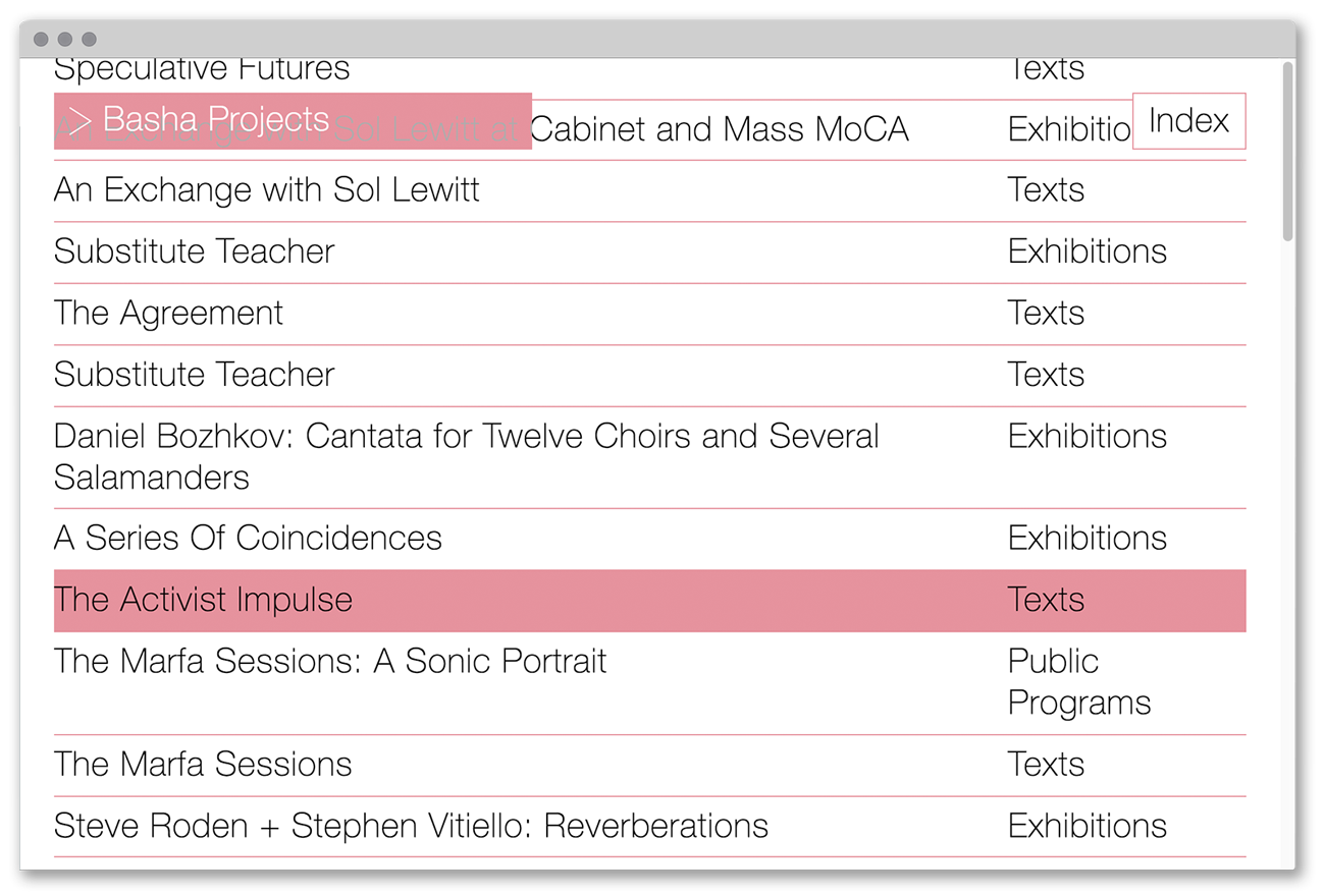 Basha Projects is a collection of Regine Basha’s curatorial output, including her writings, videos, exhibitions and public interventions.